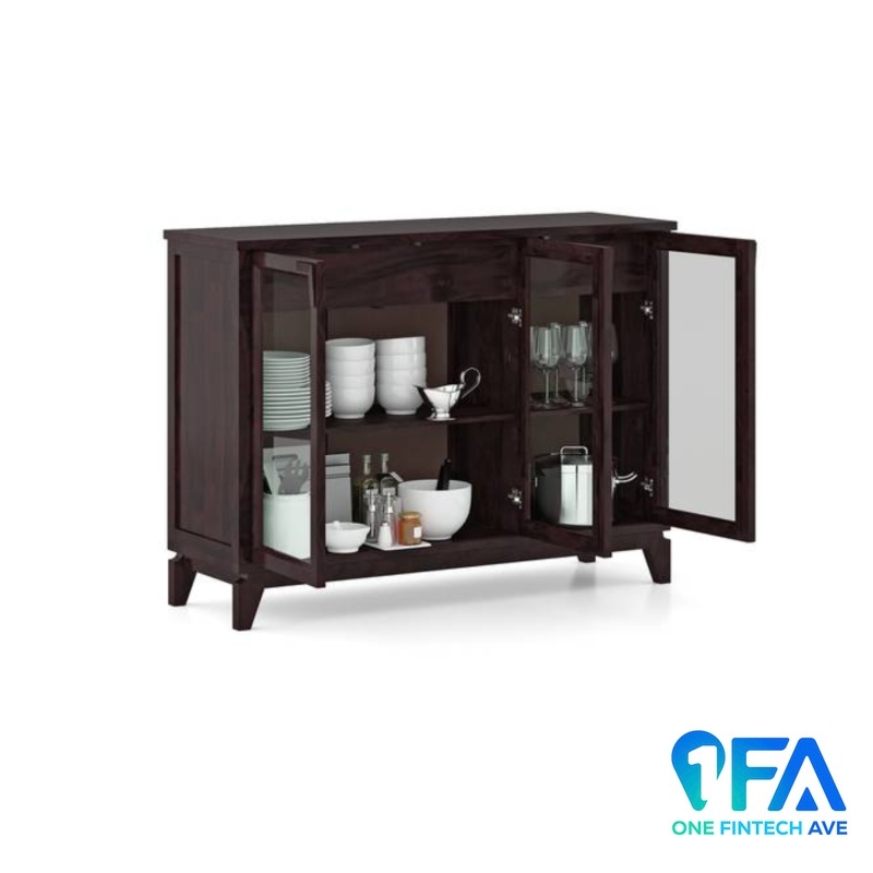 • You call it a cabinet, we call it the perfect display. The Akira features a sleek glass front, held together by warm sheesham wood. The perfect home for your museum-worthy china, it also doubles as a serving station.