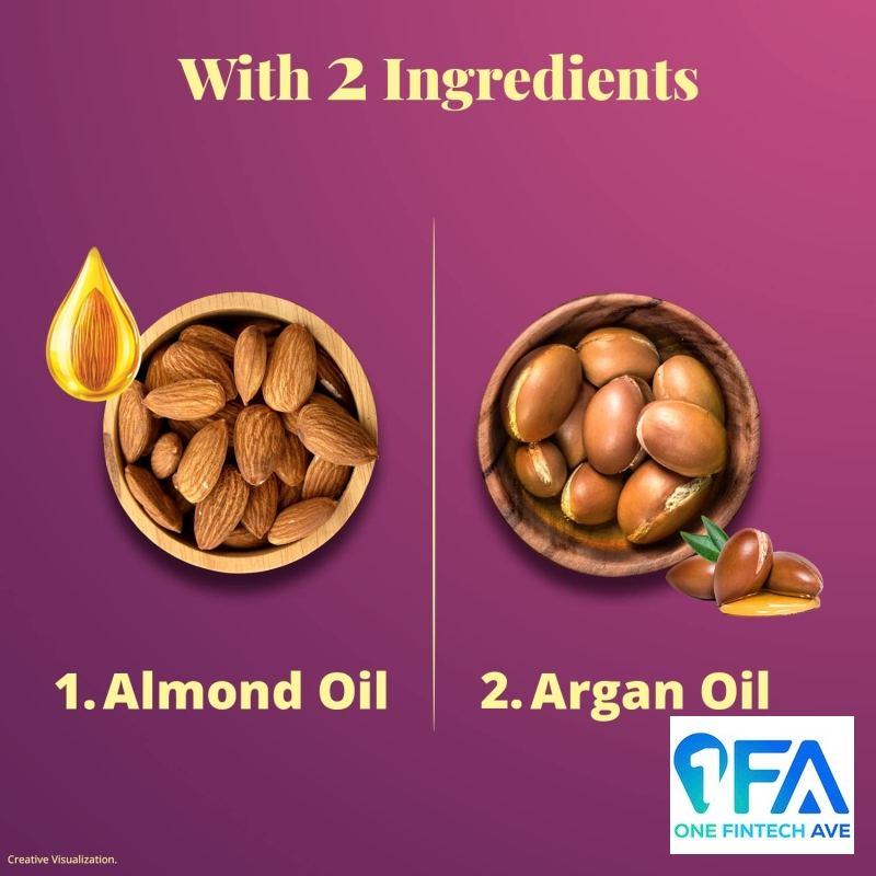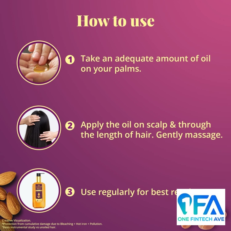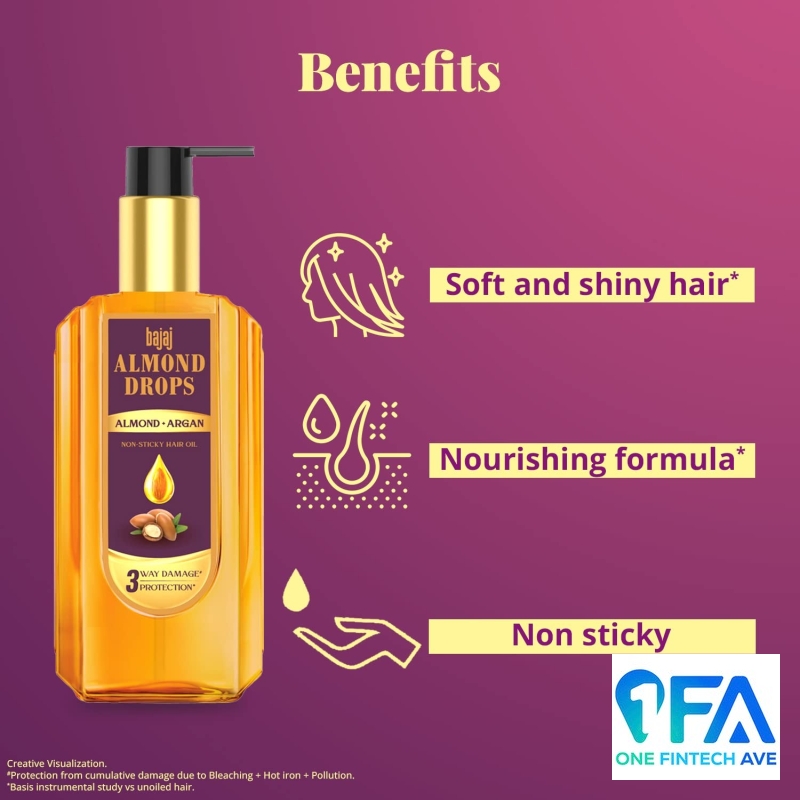 Bajaj Almond Drops Almond + Argan oil protects the hair against cumulative damage from Chemical treatments, Heat styling and Pollution