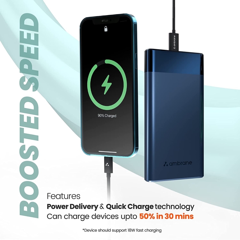 • Power-packed 10000mAh- Lithium Polymer 10000mAh capacity allows you to efficiently charge your devices multiple times. It can charge iPhone 12 – 2 times, and OnePlus Nord - 1.5 times.