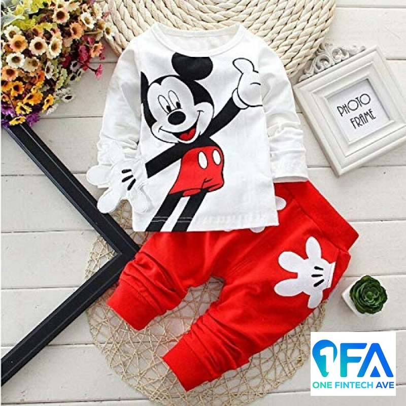 • Get this stylish latest mickey mouse cartoon clothing set home today! It’s got fun cartoon graphics, an easy-to-use pull on opening and bright colors. It’s the kind of dress kids can just chuck on without thinking because it does the job in most situations. This is a proper all-round clothing set.
