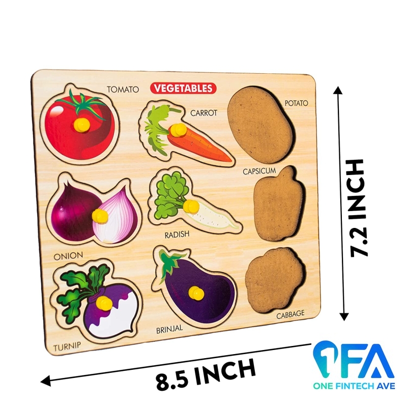 • kids learning toys Contains Two base board. Each base board Has 9 small vegetables & Fruits pieces,