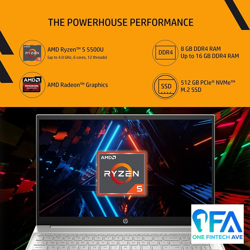 • Processor: AMD Ryzen 5 5500U (up to 4.0 GHz max boost clock, 8 MB L3 cache, 6 cores, 12 threads)