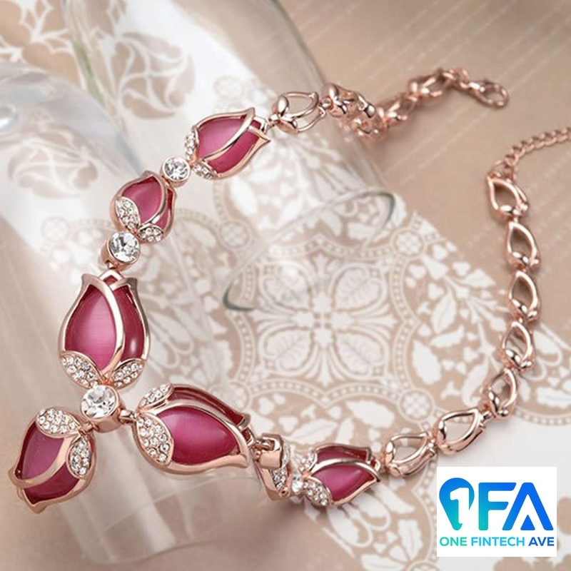 Rose Gold Tulip Design Earrings Necklace Jewellery Set