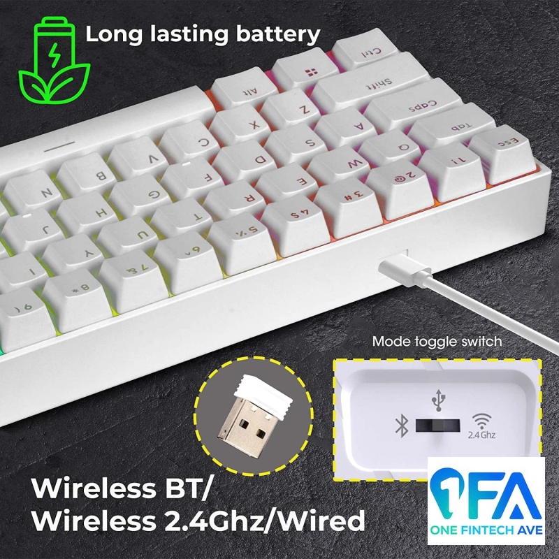 • wireless mechanical keyboard (Black / white color variants) to help you save space on the table with an easily portable size & a minimalistic design.