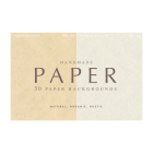 The paper texture surfaces range from soft to grainy to rough or smooth with speckles and particles in most of the papers giving a great organic feel. The papers come in a range of natural colors including off-white, tan, gray, and blue.