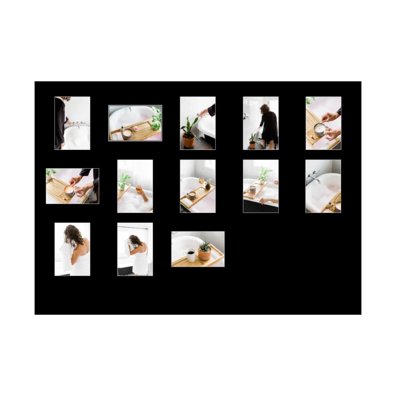 High-resolution landscape- and portrait-oriented images. An elegant bath scene a perfect self-care afternoon beautifully shot from a variety of angles and compositions. Perfect for your modern, clean lifestyle posts and feminine branding and ready to be customized with your designs for your business!